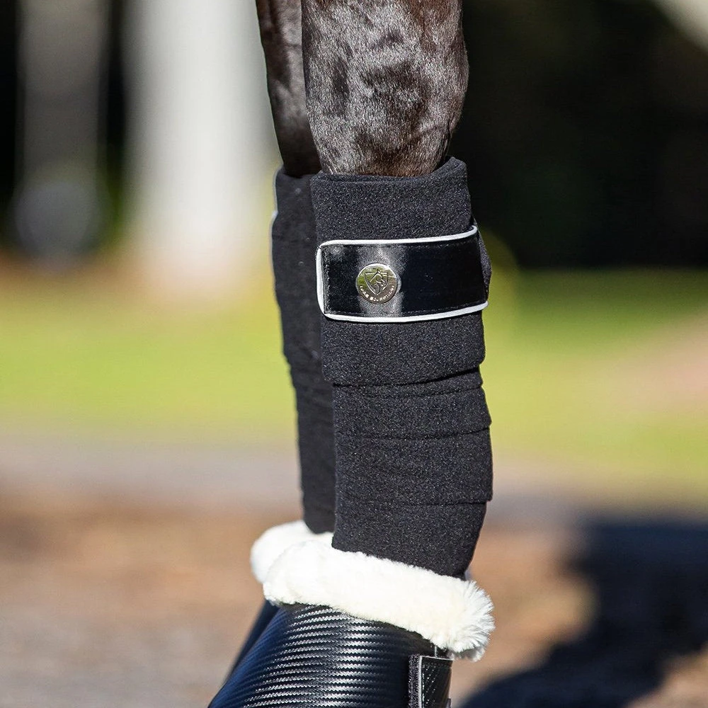 A luxury over-reach boot made from a specialised neoprene with secure, double locking straps and lined at the top with techno wool for extra comfort. Pair with your favourite BARE AIR Carbon Brushing Boots or Fleece Bandages.