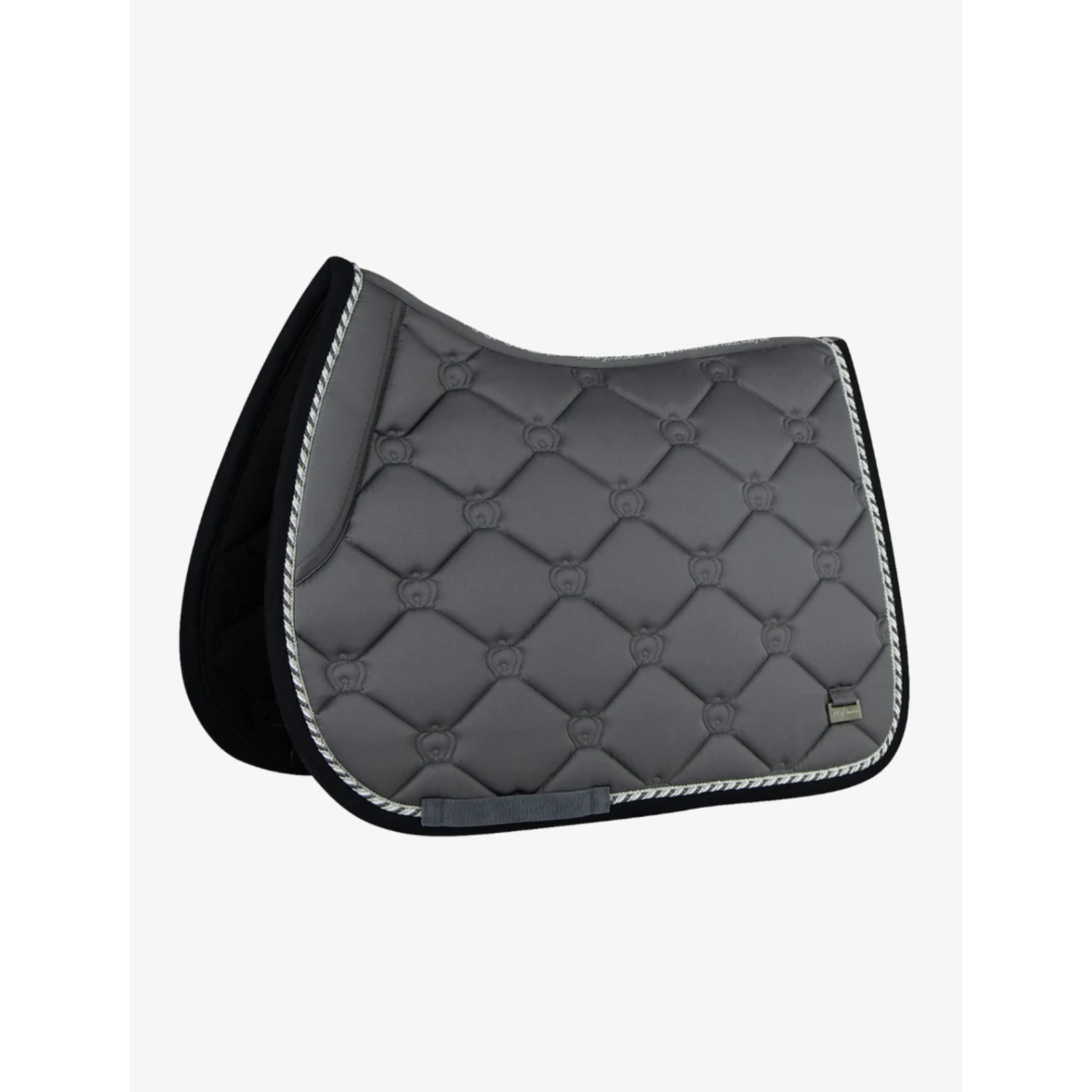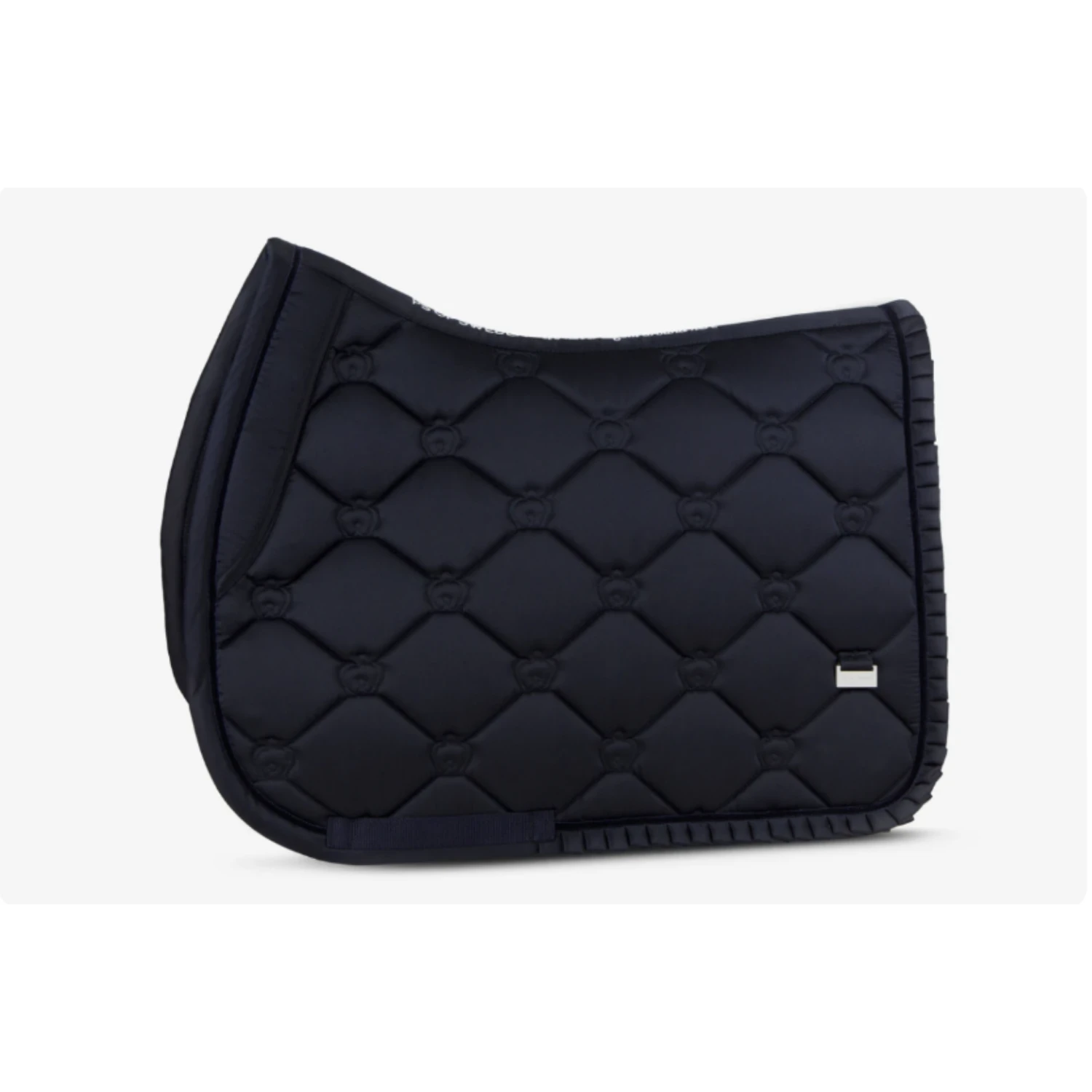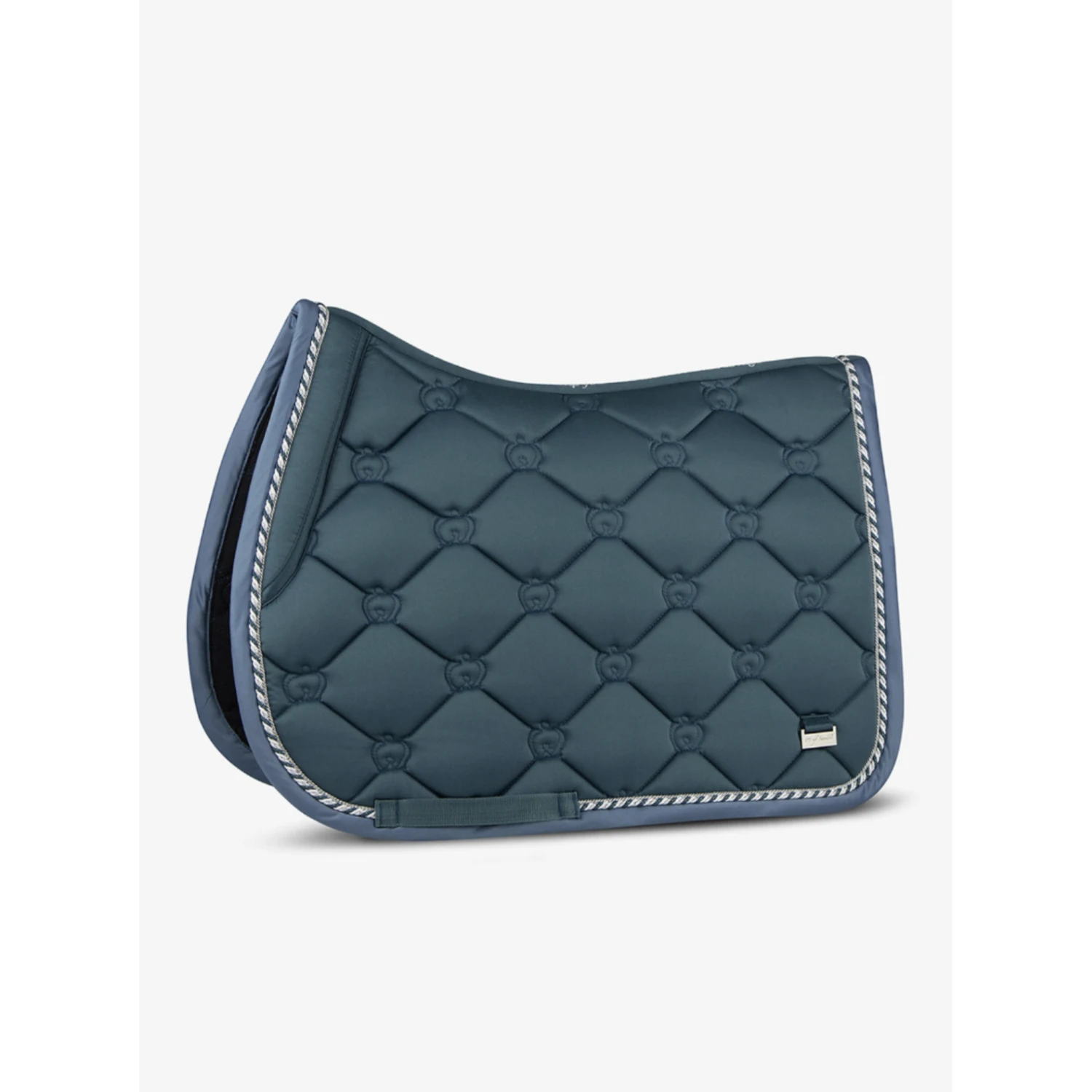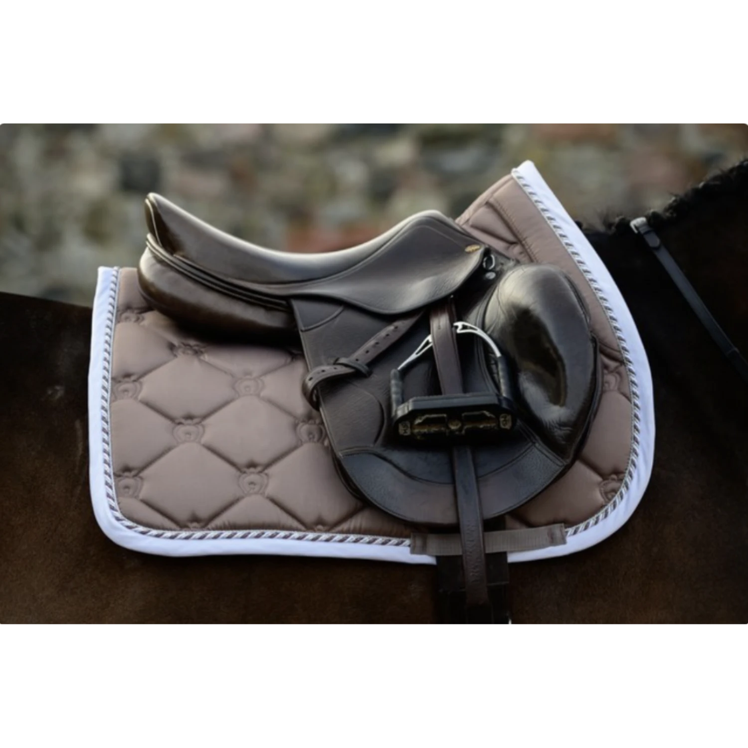 Anatomical saddle pad with double piping and the PS of Sweden crown embroidered in a luxurious monogram pattern. Unique stop cushions keep the saddle pad in place and remove friction. The inside is covered with an antibacterial quick-dry material that transports moisture and sweat.