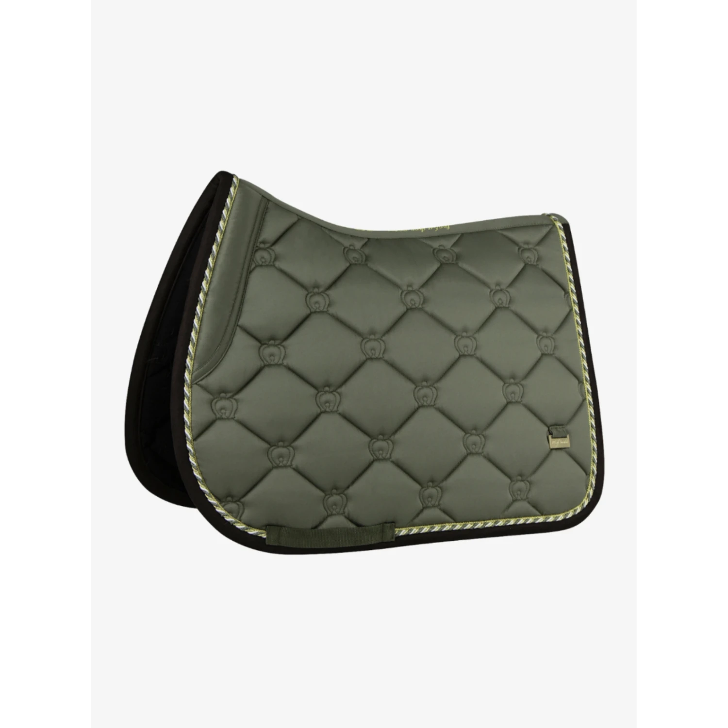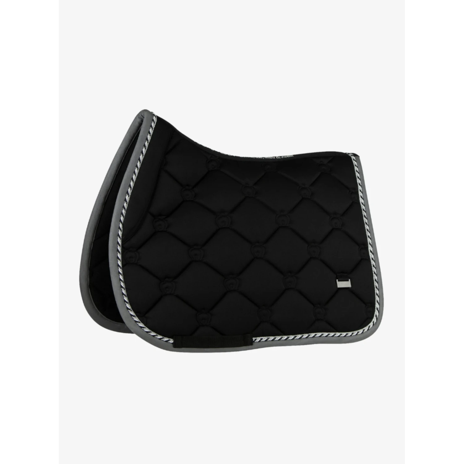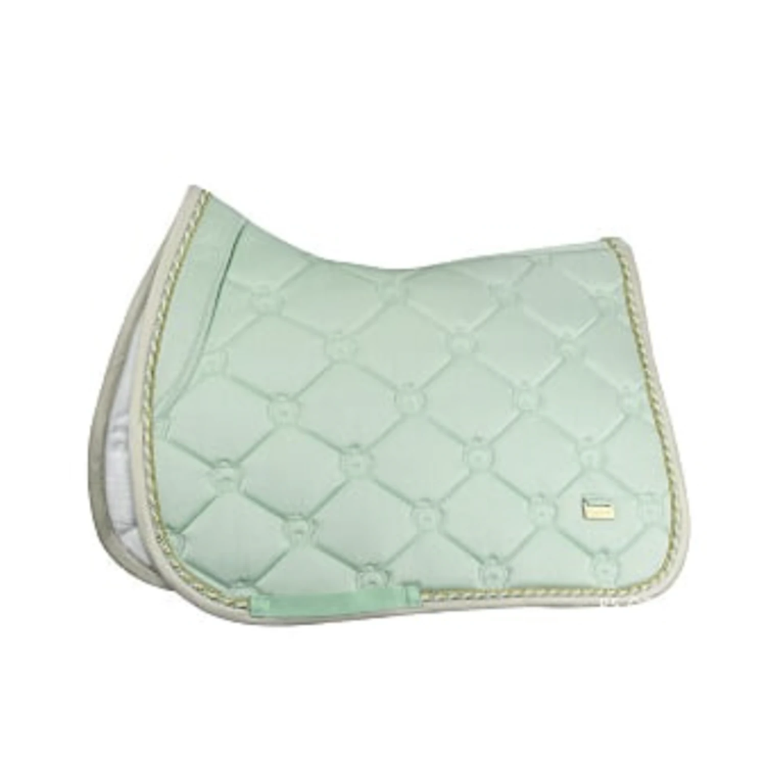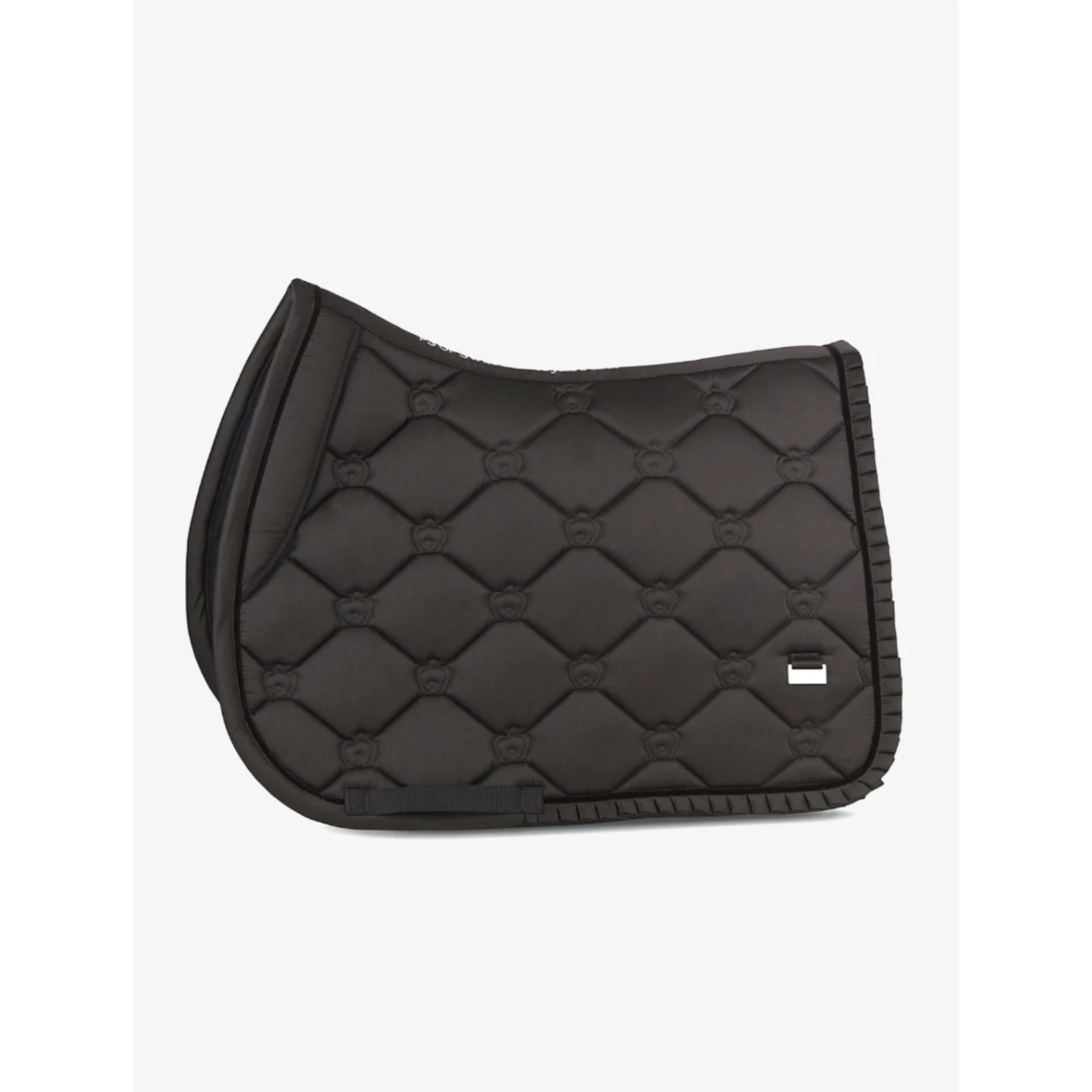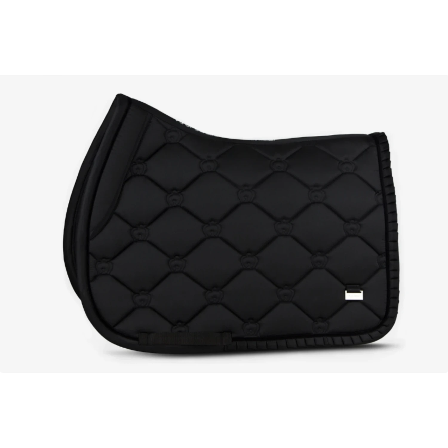 Anatomical saddle pad with double piping and the PS of Sweden crown embroidered in a luxurious monogram pattern. Unique stop cushions keep the saddle pad in place and remove friction. The inside is covered with an antibacterial quick-dry material that transports moisture and sweat.