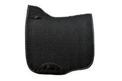 ThinLine is a thin, shock-absorbing non-slip breathable foam. The only product endorsed by surgeons, master saddlers, riders and veterinarians. The Thinline material is sewn onto the panel of our half saddle pads. The manner in which ThinLine absorbs motion encourages horses to lift their backs, developing strength and top-line. It has been endorsed by Veterinarians, for horses, as well as Spinal Surgeons for riders. It is a top pick for Master Saddlers around the world. Equine Chiropractors and Massage Therapists carry it on their trucks to keep horses