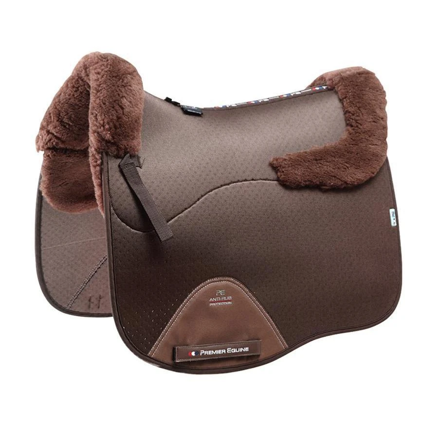 Our saddle pads are made with grade 1 Merino wool, a natural shock absorber that thermoregulates. The wool can absorb up to 30% of its own weight in moisture, and when used in conjunction with our advanced Airtechnology, it allows moisture to escape, keeping your horse dry and comfortable. The technically advanced system of protection and injury prevention is further enhanced by our new spine design, which reduces pressure points and provides the best protection for your horse.