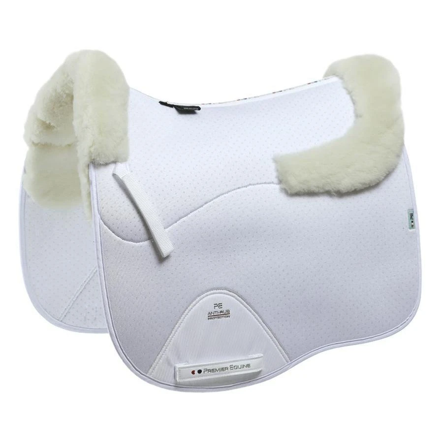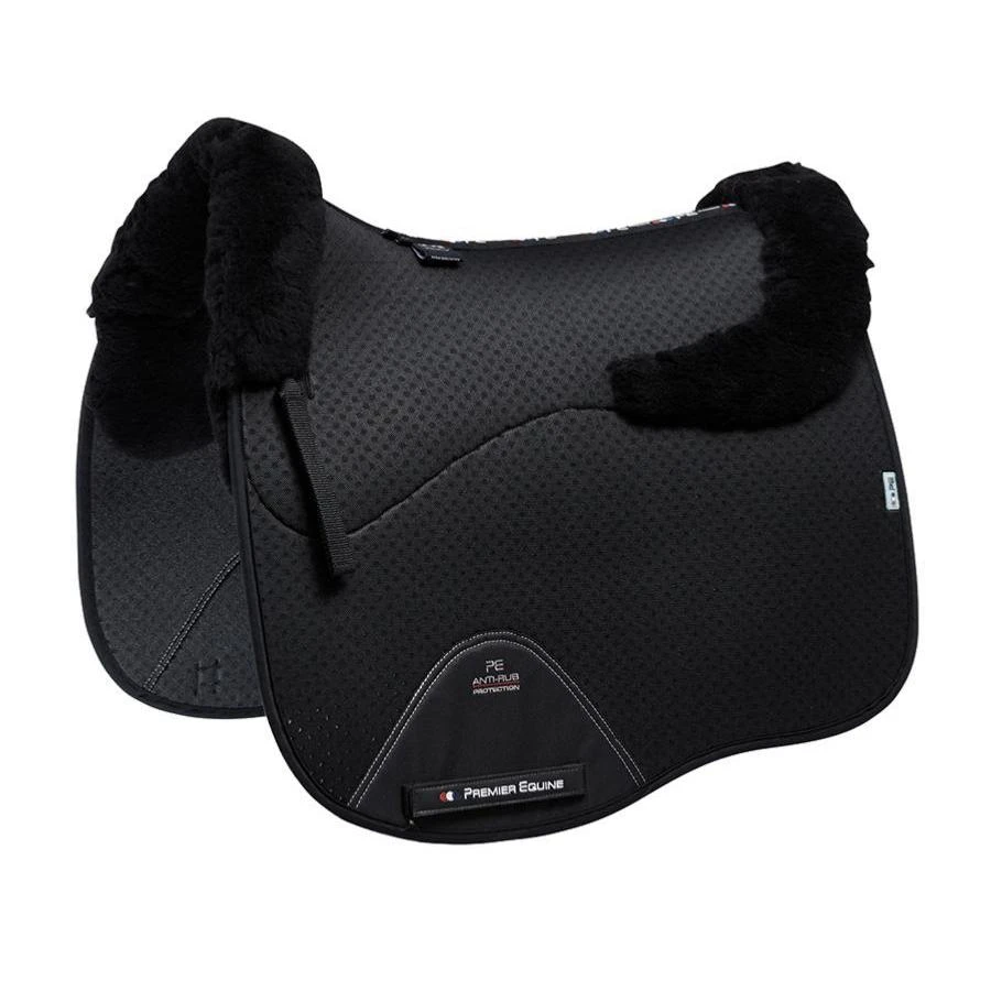 Introducing Our Wool Lined Shockproof Saddle Pads – the perfect solution for sensitive horses who require a high level of breathability. Our saddle pads feature highly breathable and advanced synthetic materials that enhance the weight bearing areas, relieving pressure on the wither and spine. The perforated synthetic shockproof layer allows airflow between the saddle and your horse’s skin, making it an ideal dressage saddle pad.